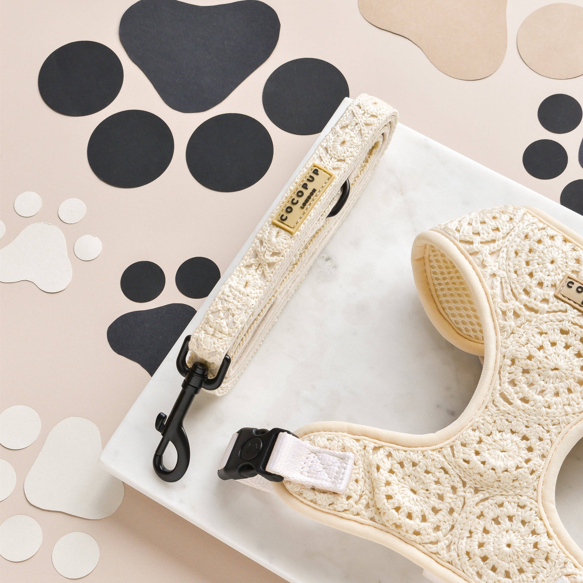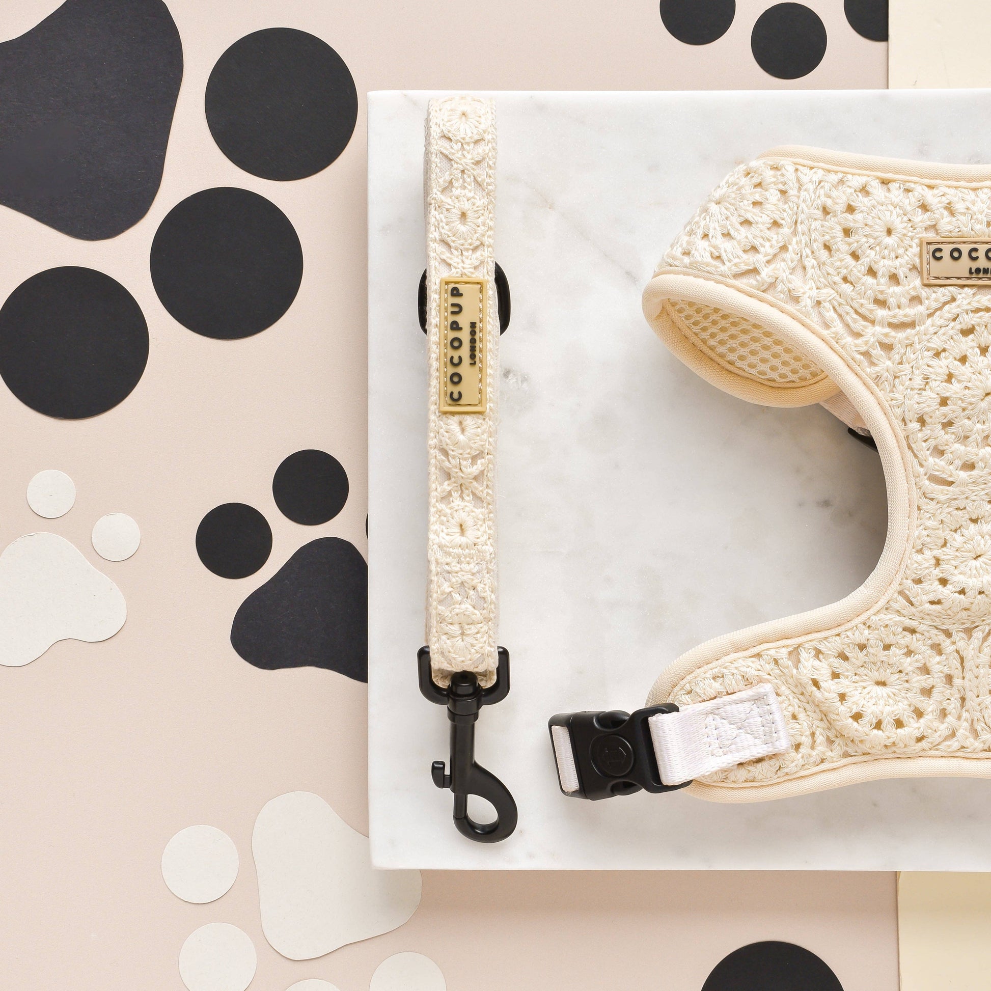 Are you getting a new puppy? Walk them in style with our Festival Crochet Lead! This lead features a crochet design, perfect for a playful and quirky look. Get ready for a fun-filled walk with your new furry friend! Our new Puppy Leads are shorter and thinner than our standard leads, making them the ideal first lead for your new pup. * Swivel black clip for easy collar attachment * Additional D-Ring at the base for Poop Bag carrying * Dimensions = 120cm x 1.5cm This product is part of our aesthetic collection - the material is very delicate **Please note that like all human accessories, dog accessories are subject to wear and tear and it is the responsibility of the owner to keep an eye on the condition to make sure it is safe for their pup to wear.