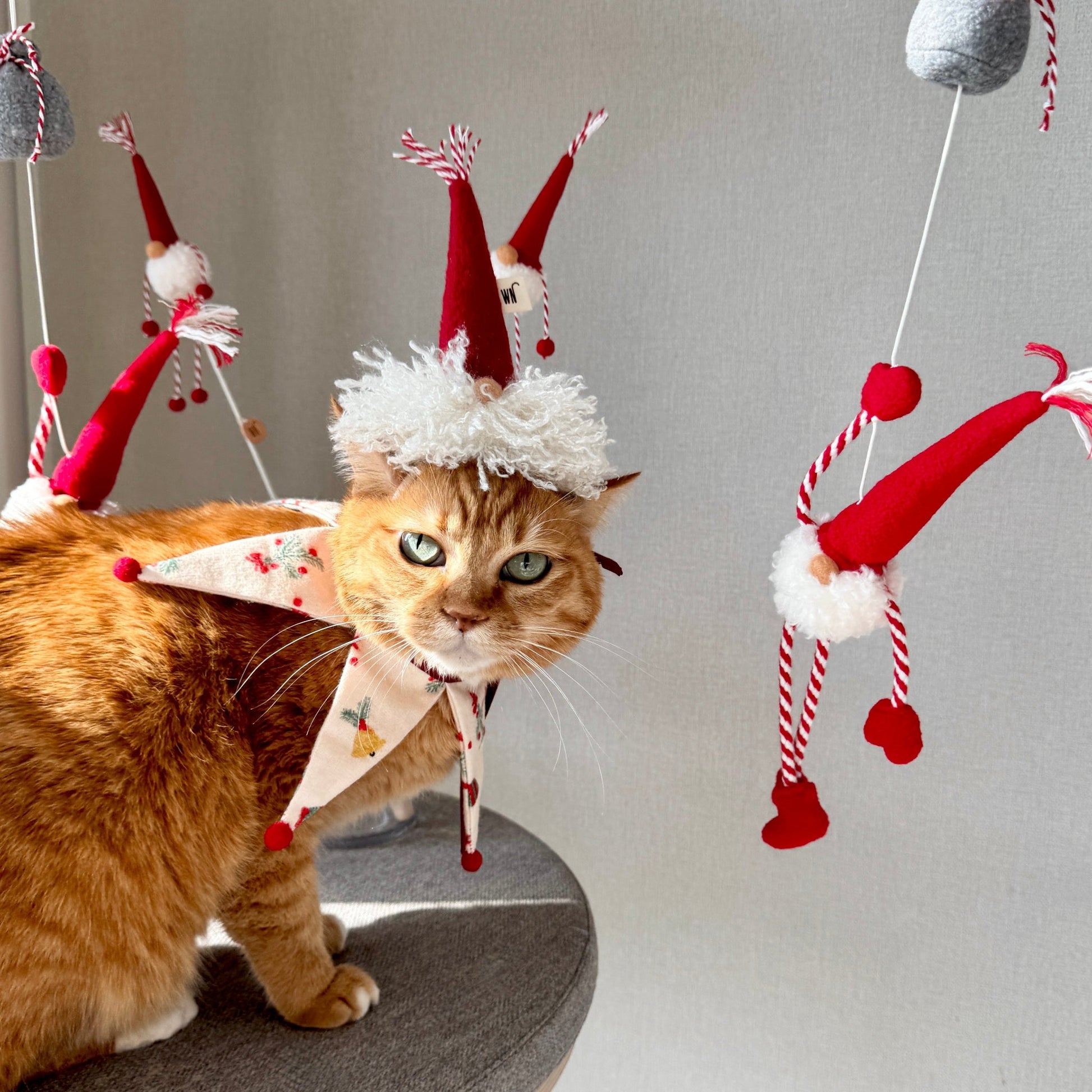 A cozy little cape inspired by winter gnomes, perfect for adding a touch of holiday magic to your cat’s (or small dog’s) festive wardrobe. ✨🎄