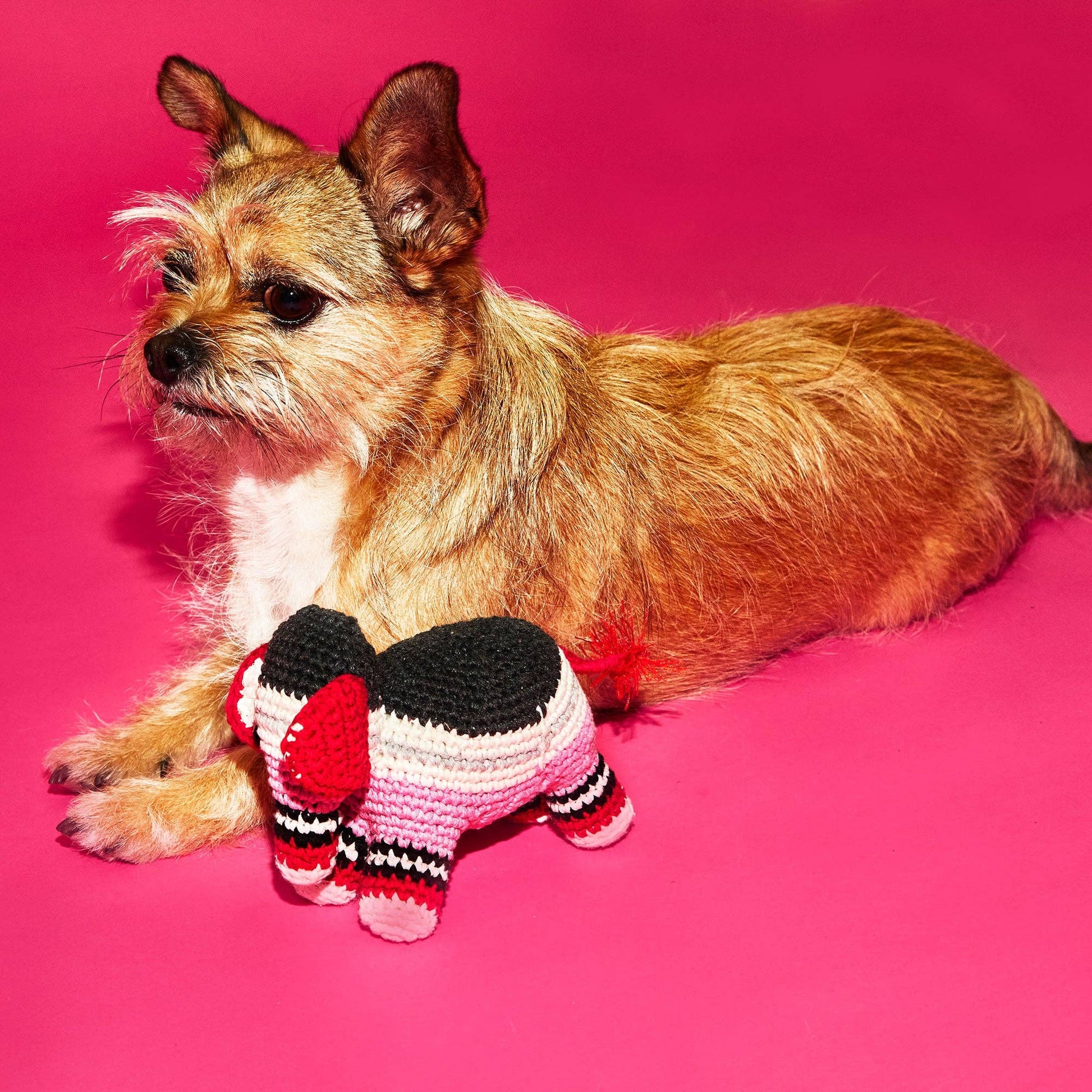100% Organic Cotton Made with all natural dyes With squeaker This is a fair-trade product which provides employment to craftswomen in Turkey 4 1/2 inches long