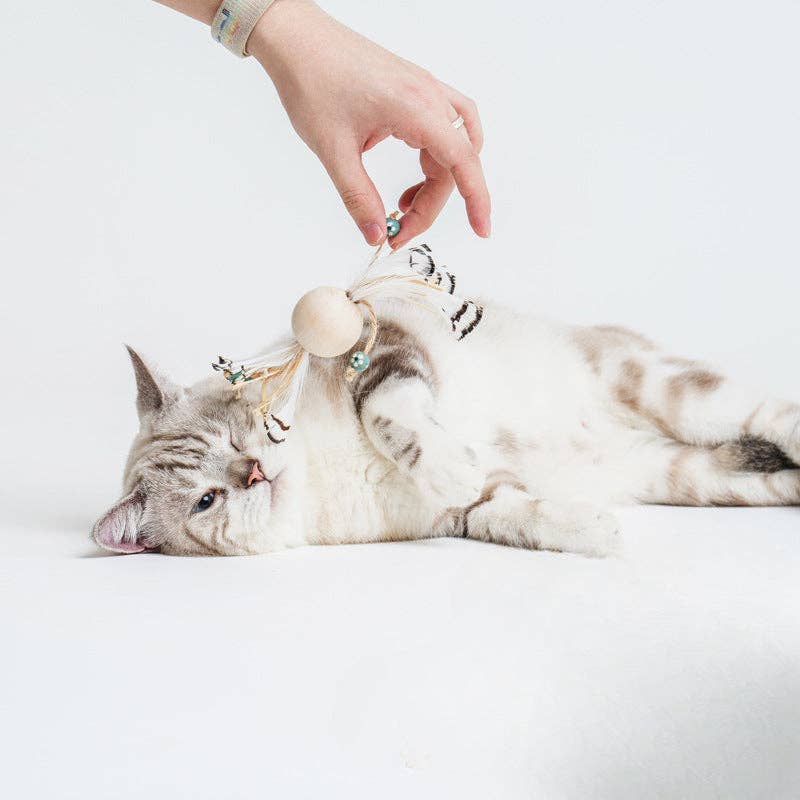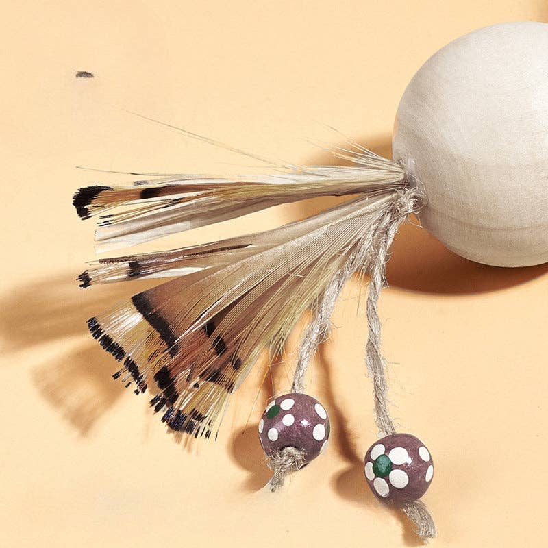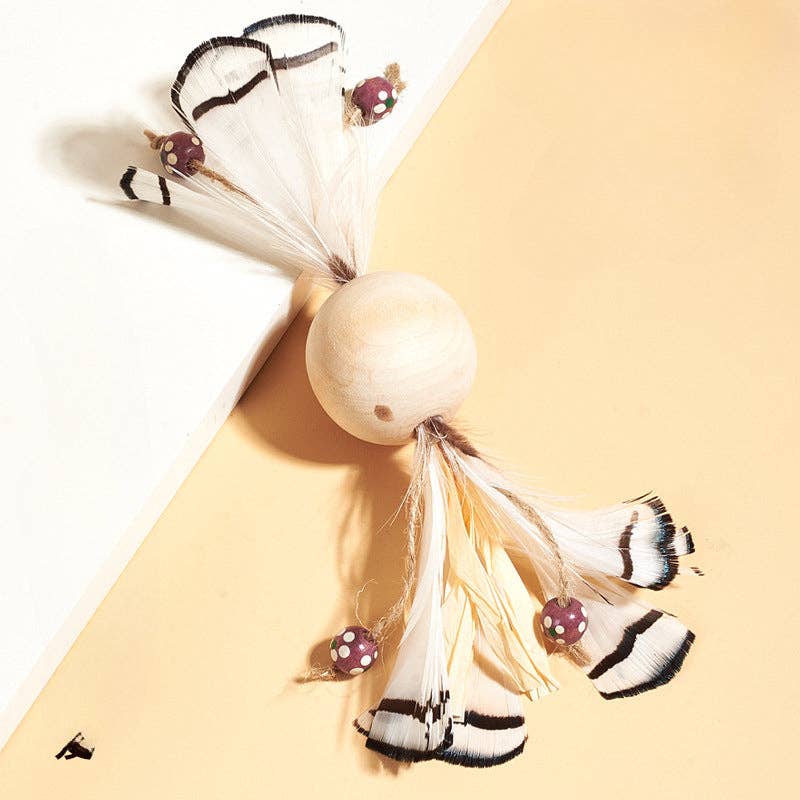 Introducing our Natural Raffia Feather Cat Toy by Cheerhunting. This toy is designed to stimulate your cat's senses and provide hours of entertainment. Here are the key features: Natural Material: Made from natural raffia, ensuring safety and environmental friendliness. Rolling Action: The toy rolls and bounces, keeping your cat engaged and active. Feather Attachment: Features feathers that mimic prey, sparking your cat's hunting instincts. Interactive Play: Promotes interactive playtime between you and your cat, strengthening your bond. Size: Measures approximately 6 inches in length, suitable for cats of all sizes. Treat your cat to endless fun with our Natural Raffia Feather Cat Toy from Cheerhunting!
