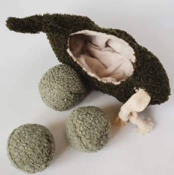 The PEA POP pod can hide treats and by encouraging your pup to dig out each pea, not only will your pup be rewarded with treats but THREE fun bouncy balls! The teddy plush wrapped TPR squeaky balls are not only durable but also soft on the canine mouth. The PEA POP just combines all the fun of balls and burrow toys into one! Each pup plays differently and we recommend you to keep a close watch particularly during the first time a new play object is introduced. No toy is completely indestructible, so please supervise the play to ensure safety if you know your pup is not gentle with toys.