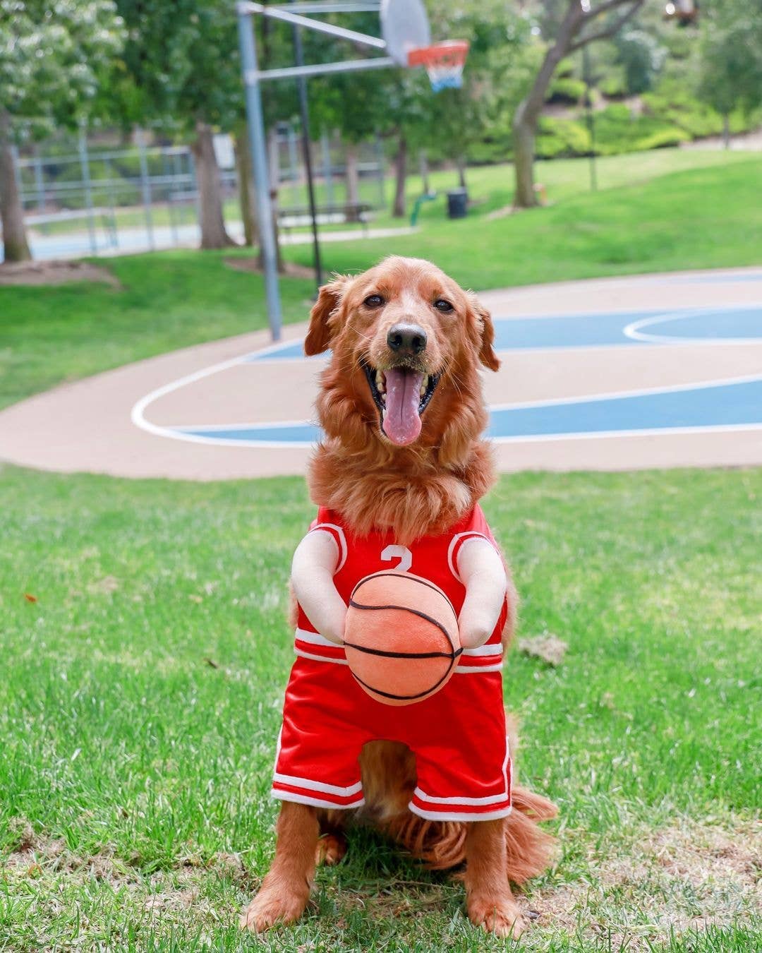 The Ball Hog is a 100% polyester knitted fabric masterpiece, A cozy costume for everyday and special occasions, the adorable 2” high-quality softboa basketball is sure to have passersby commenting on your doggo's strong game, This snug, soft, and easy to slip on and off costume is a slam dunk for any dog!
