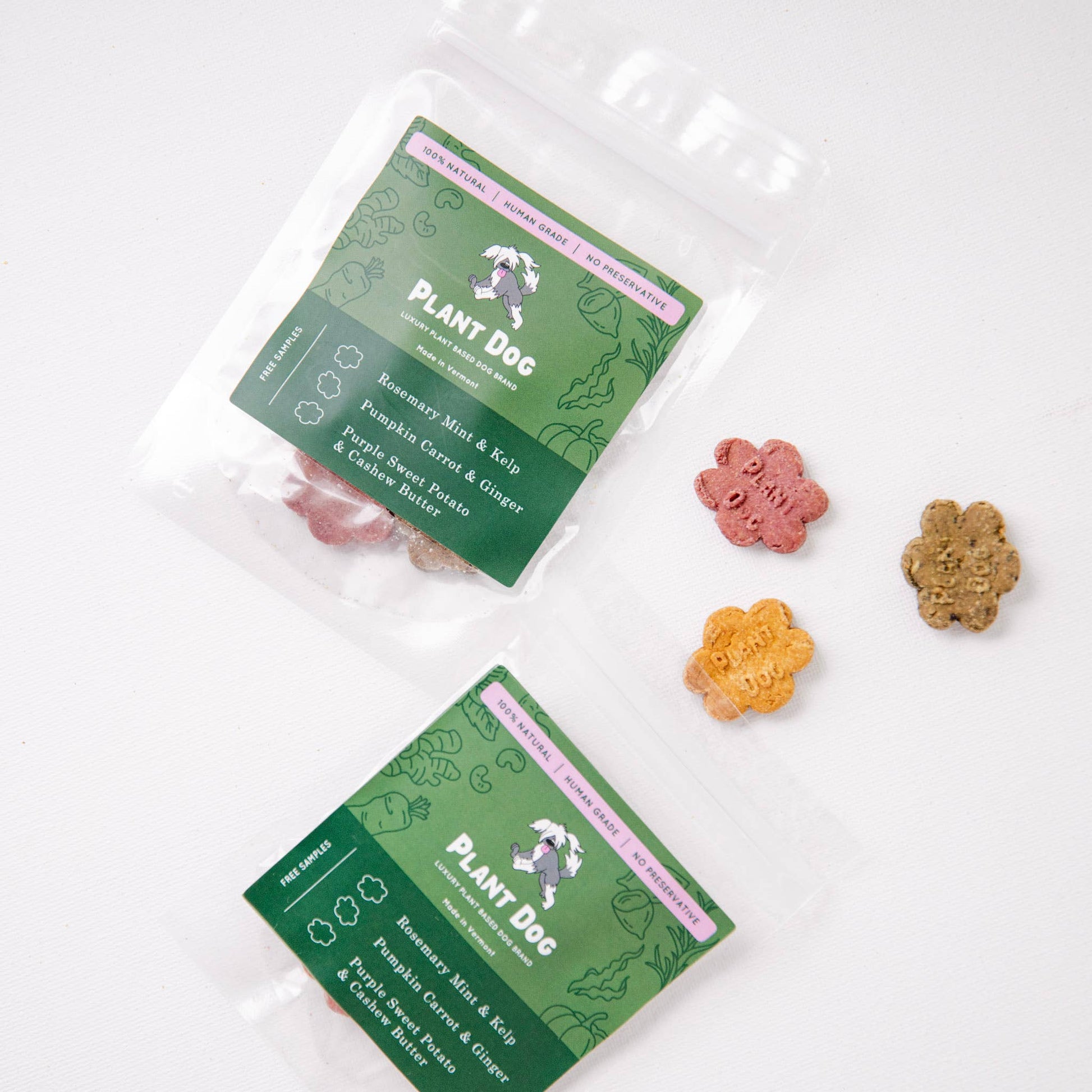 Each pack contains 6 cookies, 2 of each flavor. Flavors: Purple Sweet Potato and Cashew Butter, Pumpkin Carrot Ginger, Rosemary Mint and Kelp