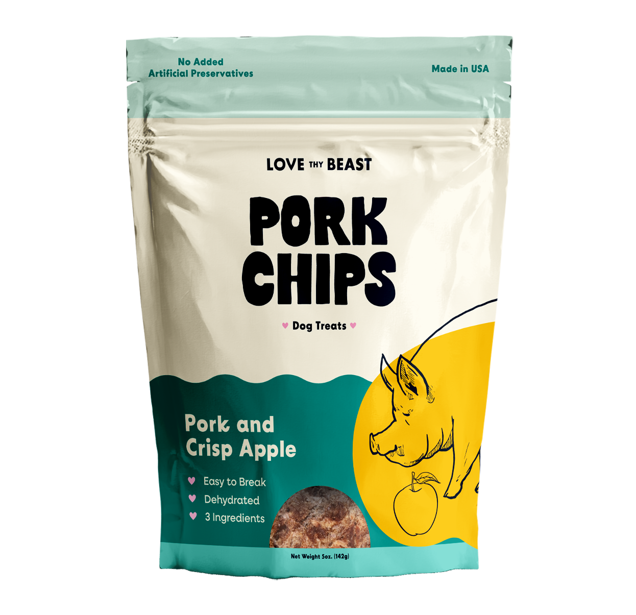 Pork Chips, Dehydrated Dog Treats, 5-oz bag