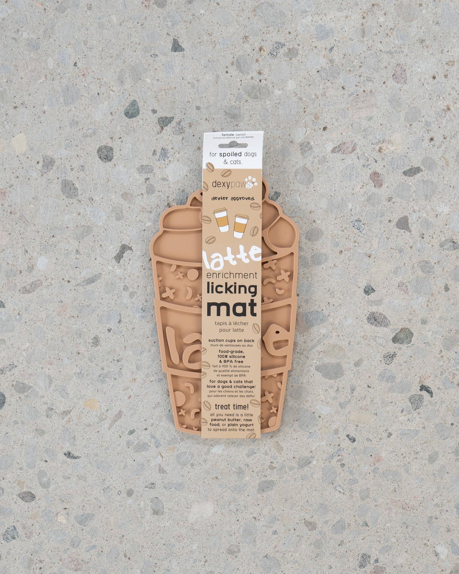 created + designed by Dexypaws Dexter says: "Keep your furry friend busy all day long with our calming enrichment licking mat. This design can help keep your dog or cat busy during the day or stressful moments like bath time or when they are feeling anxious! All you need is a little peanut butter, raw food, or plain yogurt to spread onto the mat to encourage your pet to focus on getting all the irresistible spread off the mat." Did you know that your dog's favourite wet or raw food can be spread onto the mat to replace their feeding dish to help them slow down during feeding time? We do this all the time with Dexter! This is a must-have in our household! It’s a dexy fav! Material: Food-grade 100% silicone & BPA free