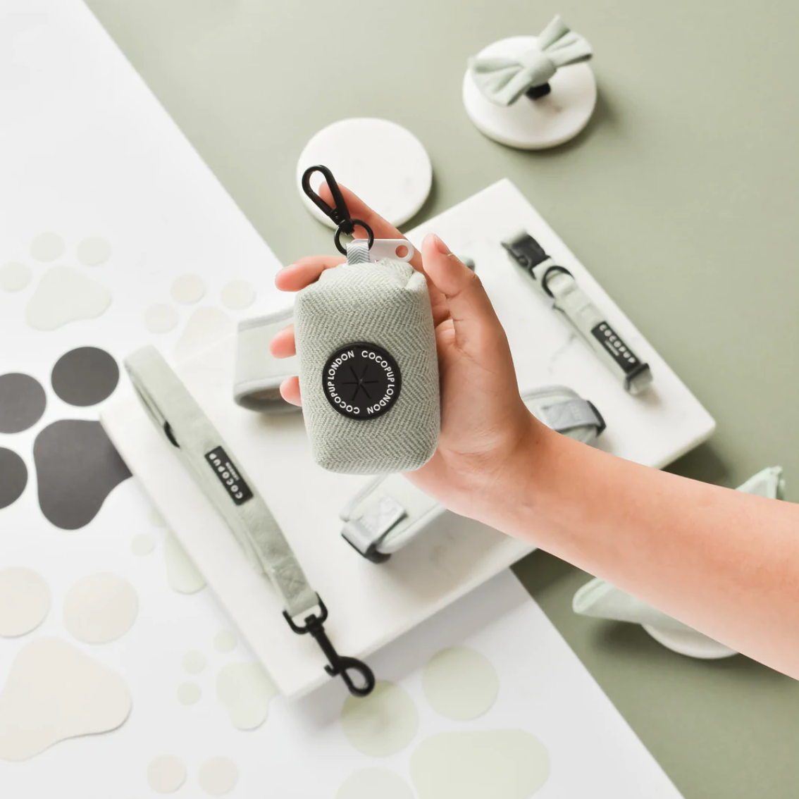 Country bumpkins say hello to our stunning Sage Tweed Poop Bag Holder. This herringbone pattern and super soft material make for the most perfect addition to any Dog Walking Bag. Take on walkies in chic country style. Poo bags themselves may not be pretty but who said the Poo Bag Holder can't be super cute and of course matchy matchy to your other Cocopup bits! Polyester Fabric Dimensions: 8cm x 6cm x 6cm Zip to create small purse - perfect for your keys