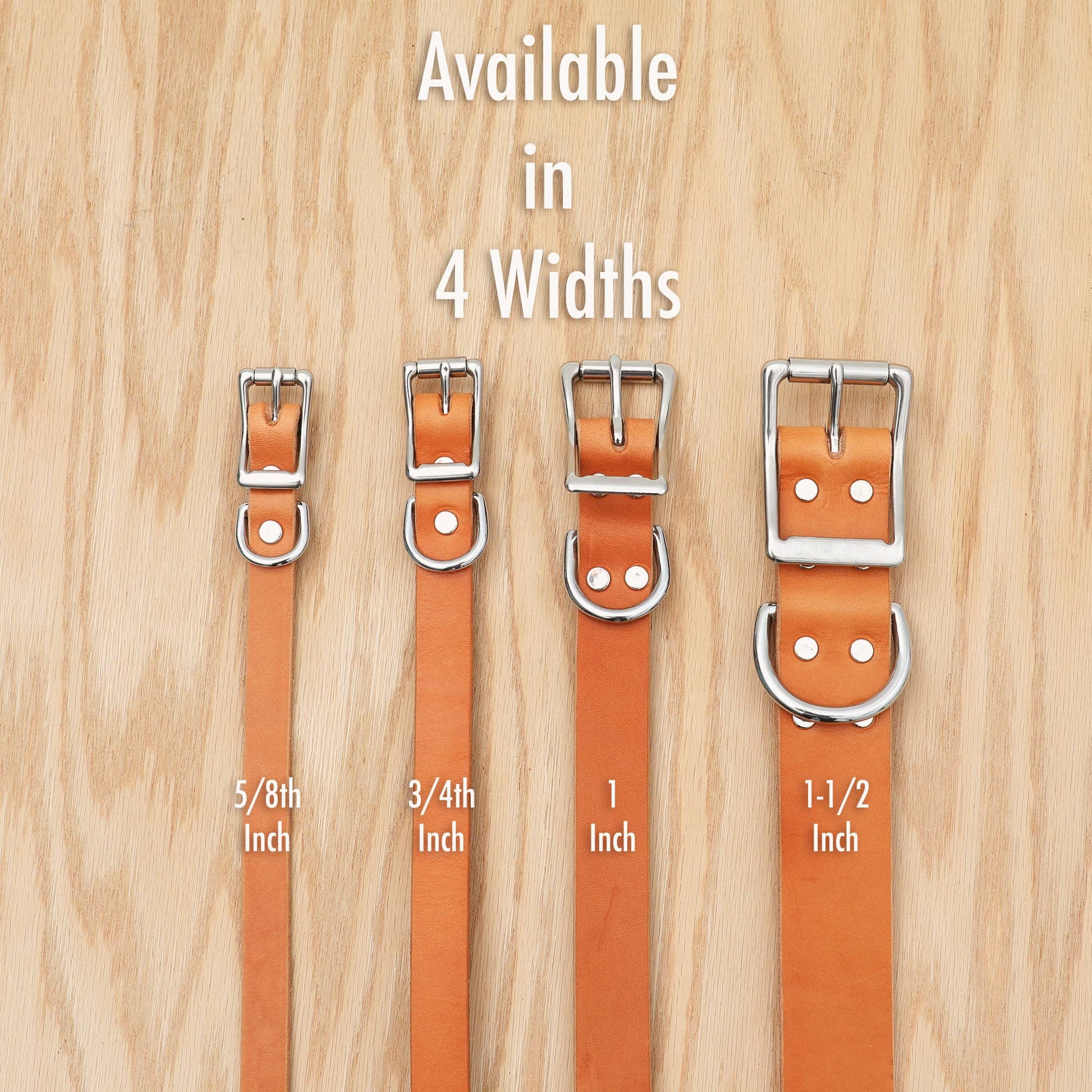 All of our leather dog collars and leads are handmade to order in our Albuquerque studios. We use only the highest quality US sourced and processed hides to ensure quality and consistency. Made with solid brass and solid stainless steel hardware for long life and a beautiful finish. All of our collars and leads are conditioned prior to shipping with a combination of natural beeswax, lanolin, and emu, tea tree and eucalyptus oils. Please let us know if you would like Silver or Brass (Gold) hardware.