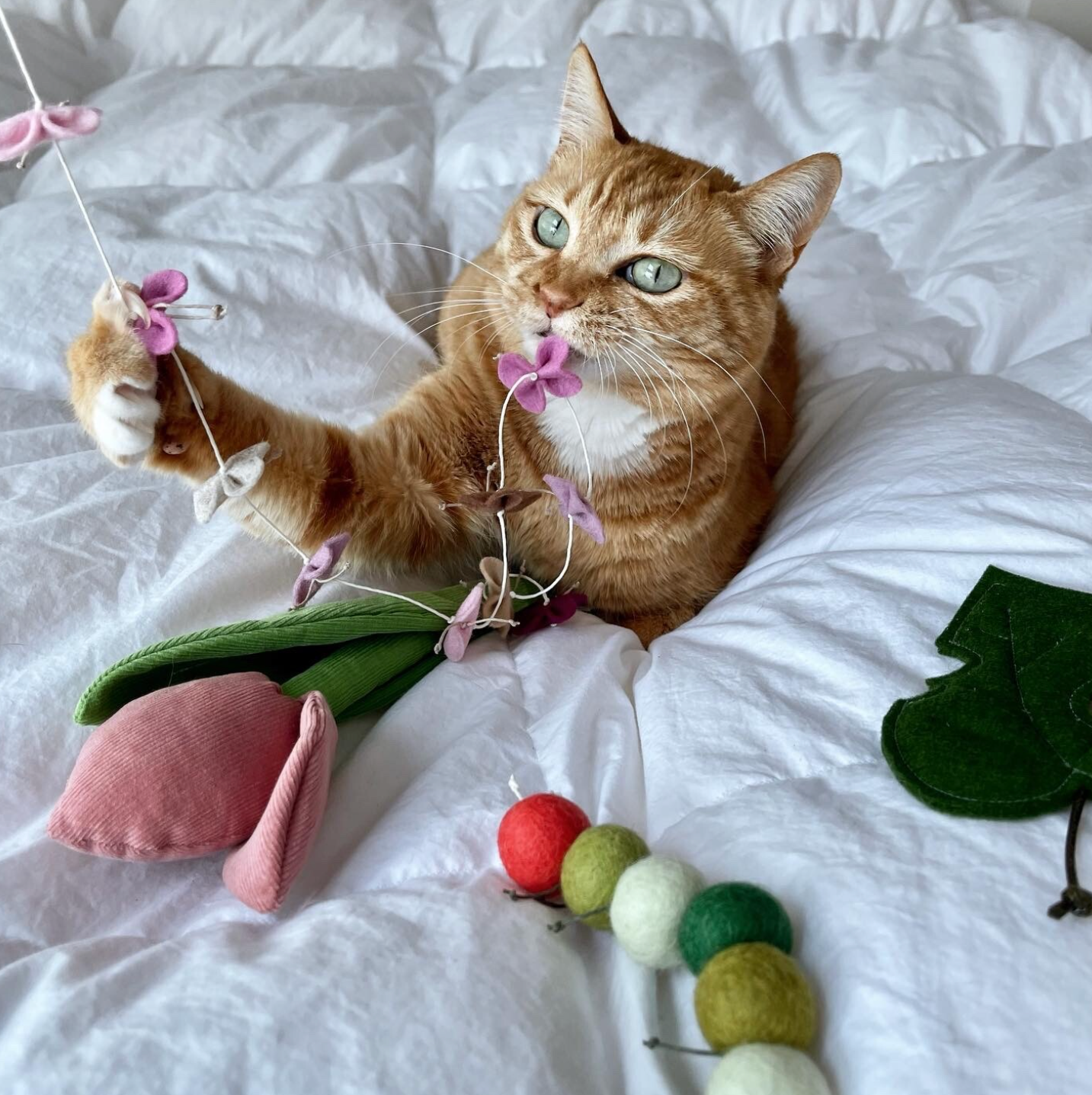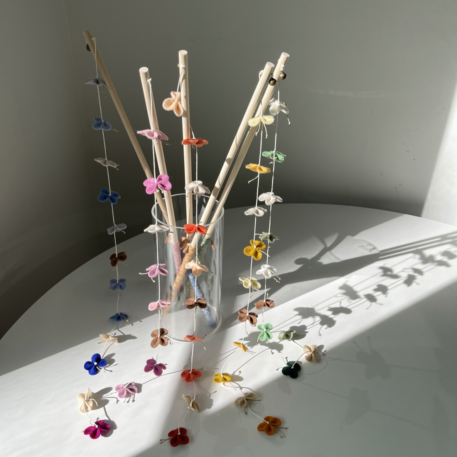 This wand toy features delicate felt butterflies that flutter with every movement—perfect for interactive play.