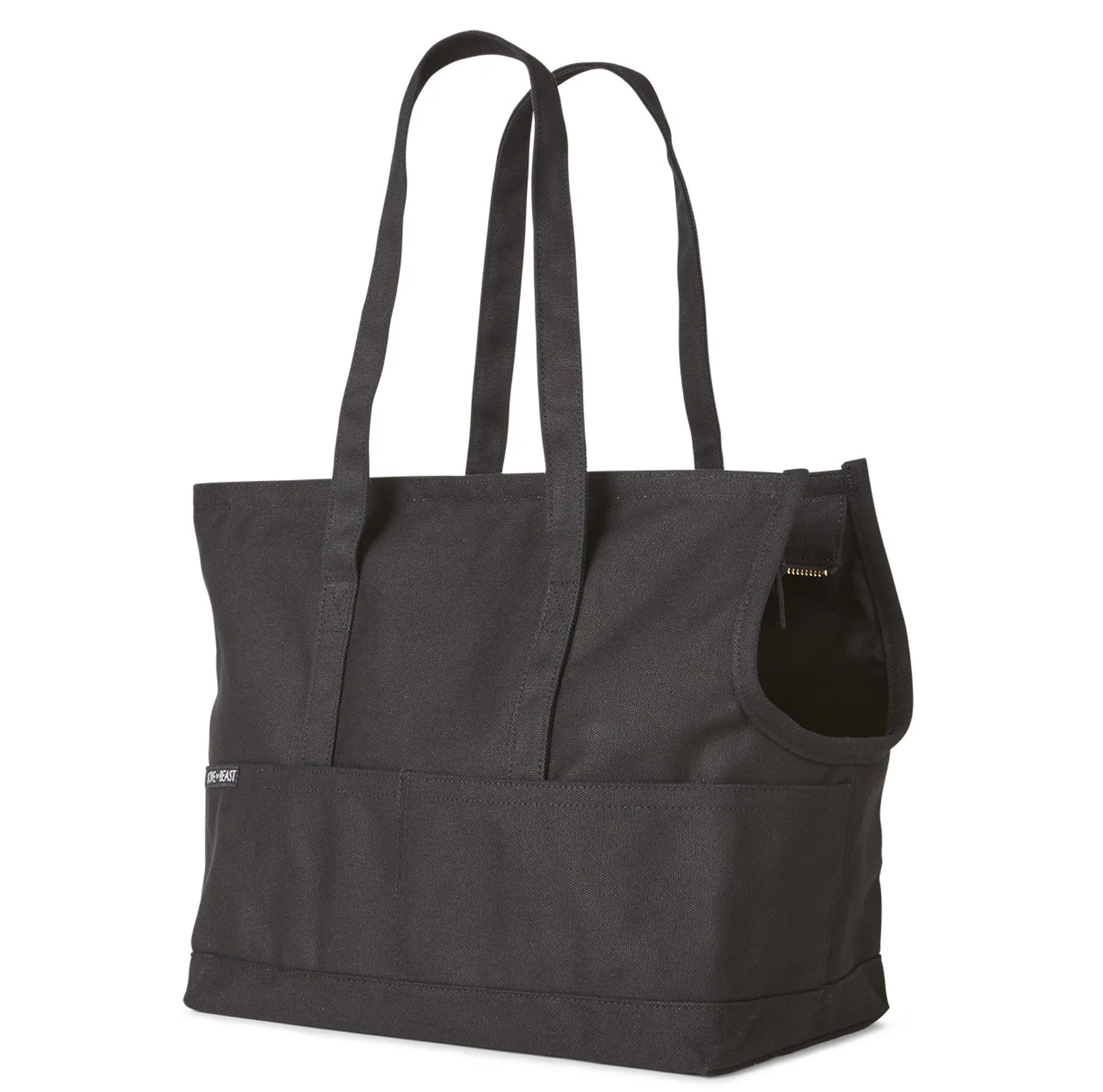 Carry your dog around in style! This utilitarian tote is made with 18oz double layer of cotton duck canvas and is double topstitched for extra durability. There is a comfortable scoop for your woof's head and has two outside pockets in the front for you. The inside features a collar-to-leash attachment with solid nickel hardware and a removable sturdy bonded leather foot pad. The tangle-free YKK zipper closure and water repellent canvas safeguards the dog from rain. Spot cleaning is recommended. ❍ Medium 14"L x 8"W x 12"H — up to 15 lbs ❍ Large 17"L x 8"W x 15"H — 15–30 lbs SIZES - Pets come in all weights, for the perfect fit measure your pet's height and length plus reference our size chart. Questions? Please write us info@lovethybeast.com - we'll get back in touch lightspeed! Made in the USA. Handcrafted in Brooklyn. Designed by Tiziana Agnello for LoveThyBeast.