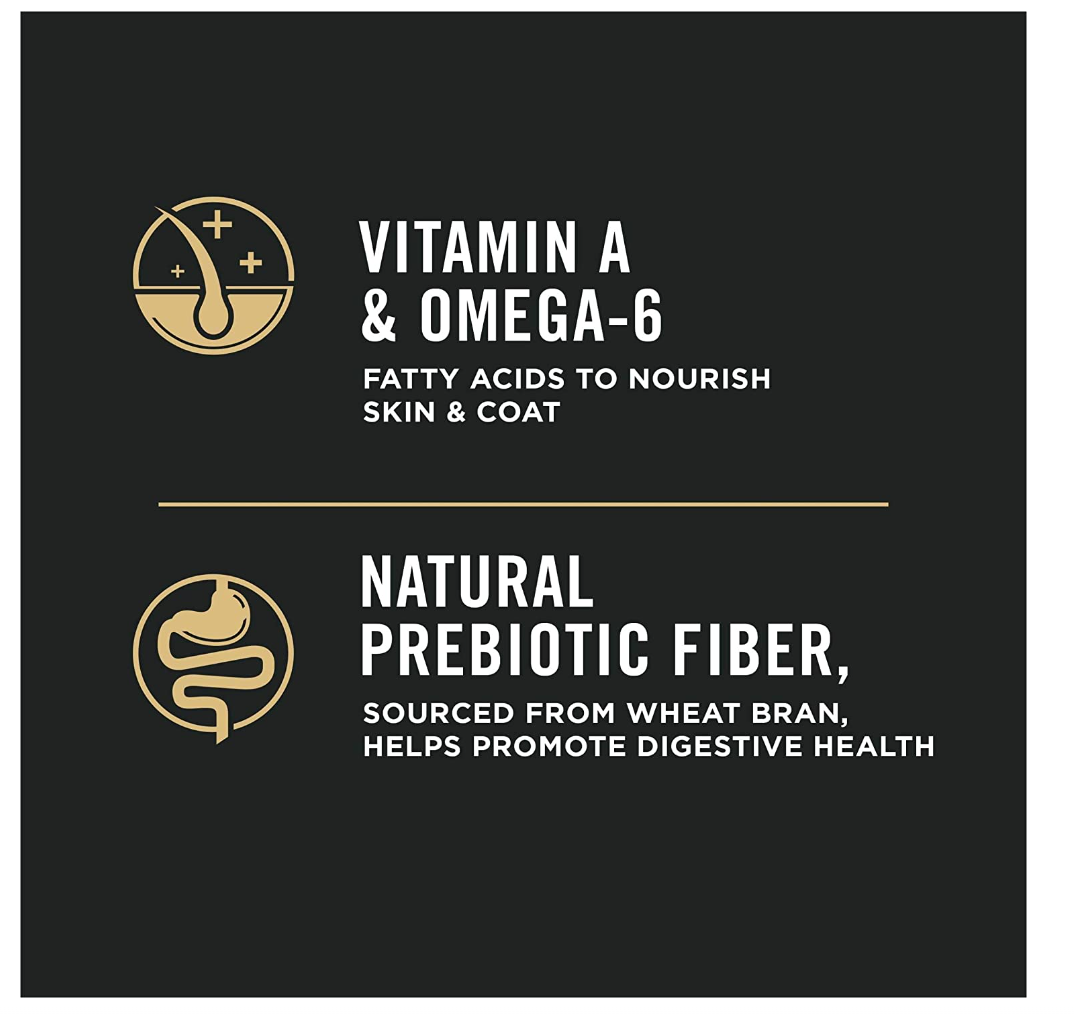 - Omega-6 fatty acids and vitamin A to nourish skin & coat