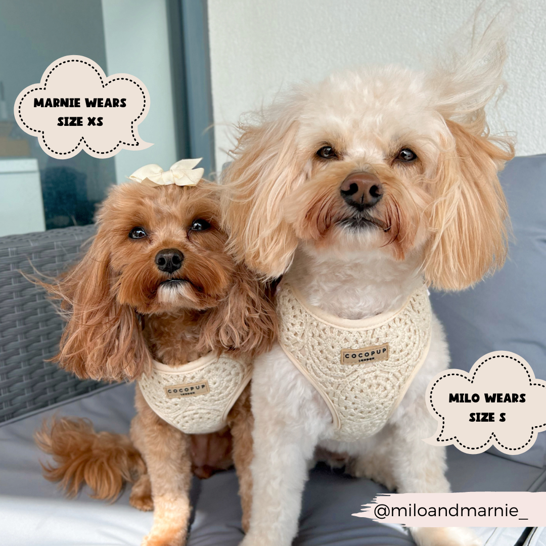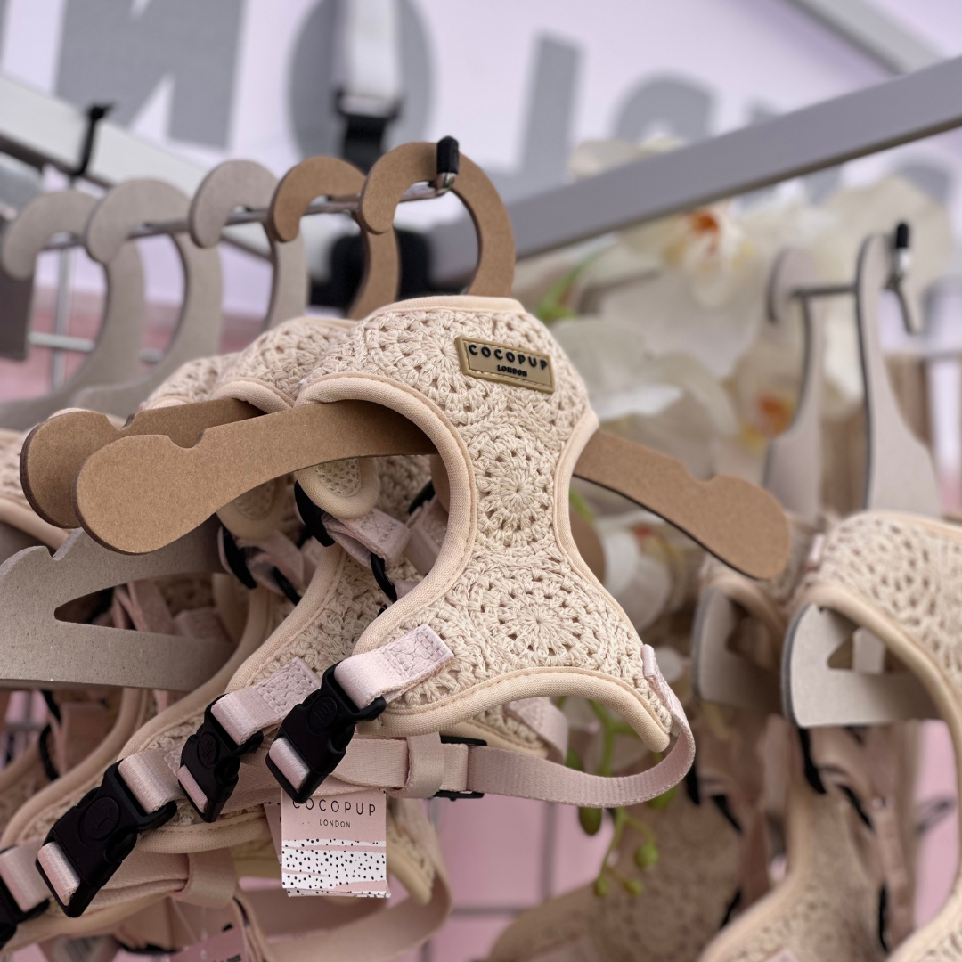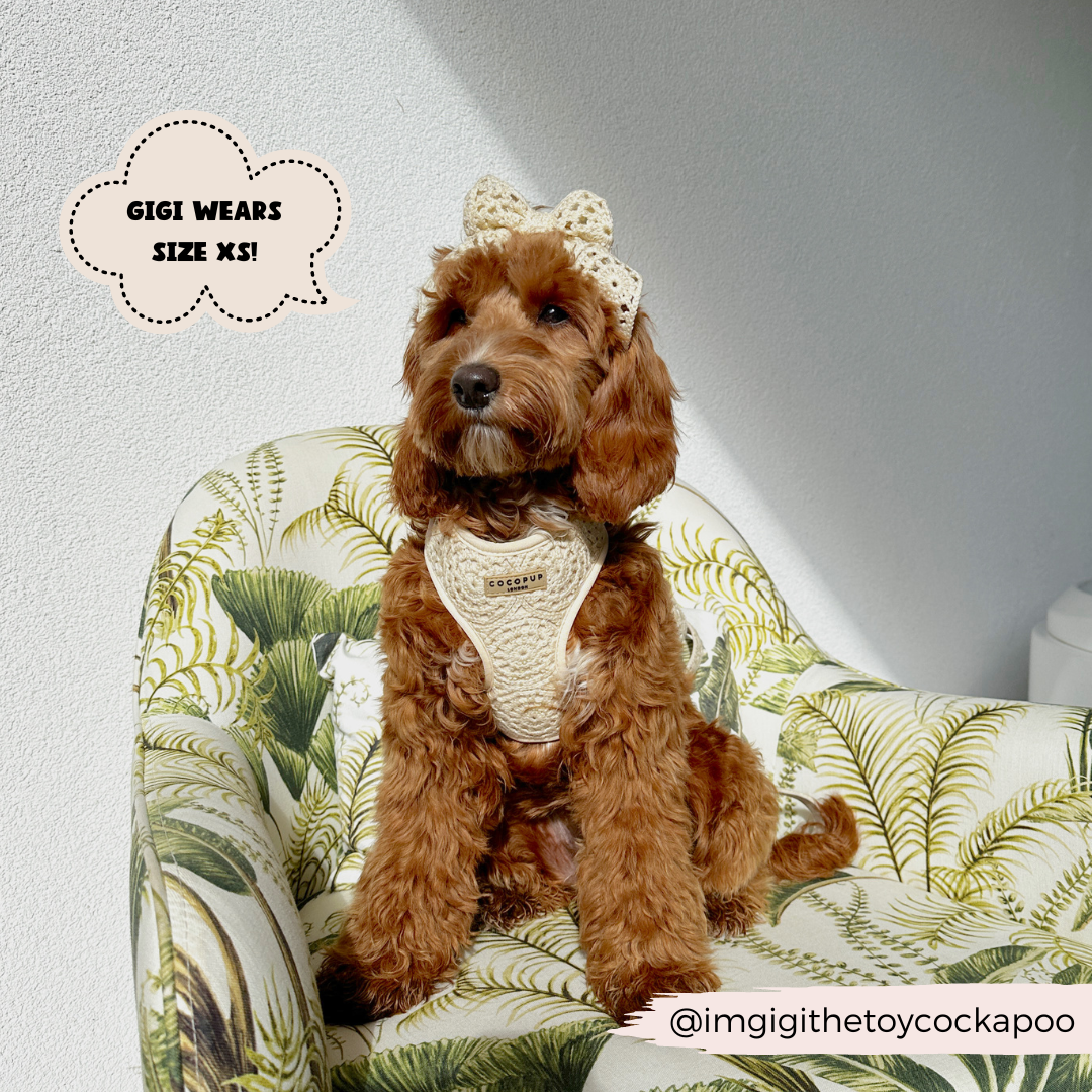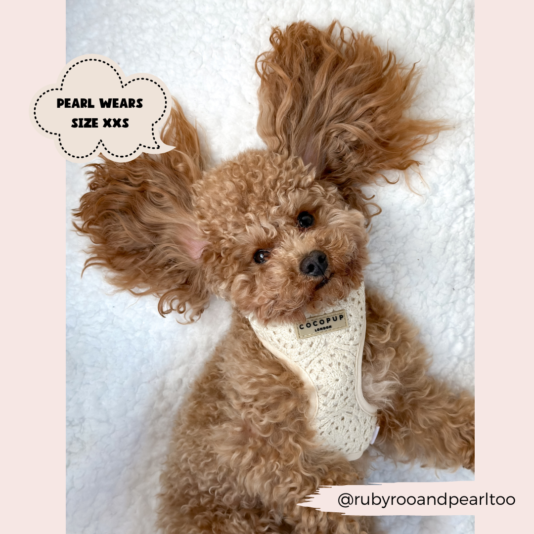 Get ready for a fun and stylish stroll with the Festival Crochet Adjustable Neck Harness! Perfect for dog walks during spring and summer, this harness is made with a chic crochet design that will make your furry friend stand out. Plus, it's adjustable for a comfortable fit. It's a walk in the park! Our Adjustable Neck harnesses provide a comfy and stylish alternative to collars. Slide over your pup's head, adjust at the neck and chest, fasten at the side and you'll be "walkies" ready! * Black D ring for lead attachment * Polyester * Lightweight and comfortable * Fully adjustable chest strap XXS: Neck = 22cm-25cm/ Chest = 30cm-40cm Extra Small: Neck = 29-36cm/ Chest = 35-48cm Small: Neck = 35-43cm/ Chest = 41-54cm Medium: Neck = 39-50cm/ Chest = 46-60cm Large: Neck = 42-55cm/ Chest = 57-80cm This product is part of our aesthetic collection - the material is very delicate **Please note that like all human accessories, dog accessories are subject to wear and tear and it is the responsibility of the o