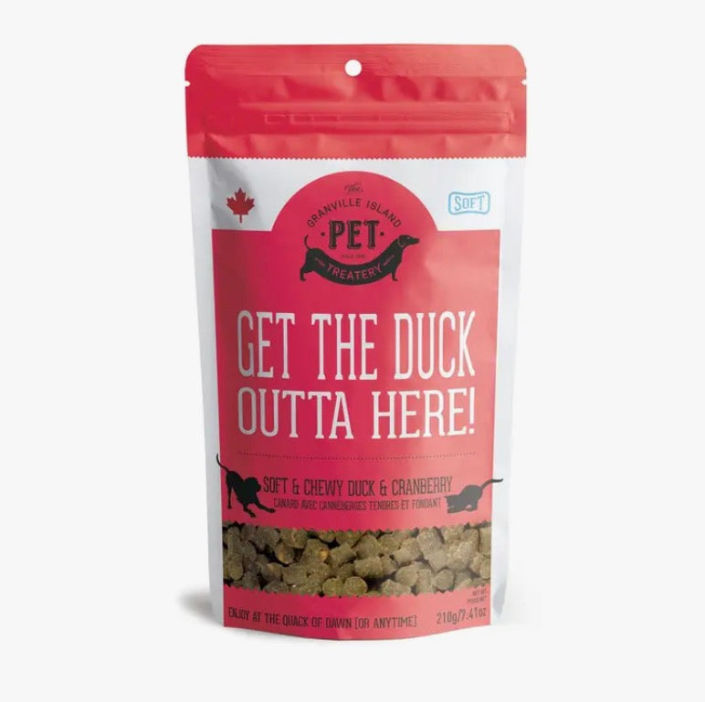 - Our Soft & Chewy Duck & Cranberry treats are perfect for all dogs, but especially for puppies and seniors. Soft dog treats can be used for a variety of reasons—and for a variety of dogs. Soft, chewy treats are commonly used for puppies as a reward during training sessions. Soft treats are faster and easier for your dog to eat than crunchy treats, and they typically have a stronger smell, which can help keep your dog’s attention during training. Soft treats are helpful for senior dogs or those with dental issues who can’t chew hard, crunchy treats. Made with real duck and cranberry these treats are delicious and make the perfect healthy dog treat. Our Human Grade duck is sourced from Canadian farms and processed in Federally inspected plants. 7.41 ounce (210 gram) bag.
