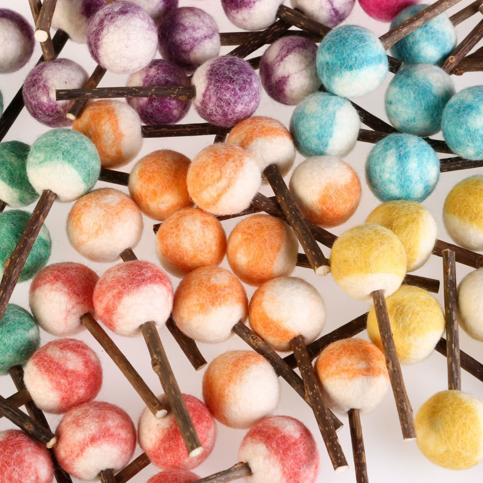 This playful treat features a 100% pure wool ball, naturally dyed in New Zealand, paired with organic Korean matatabi* stick. The two are securely bonded using a non-toxic, MSDS-tested adhesive — safe for curious paws and teeth.