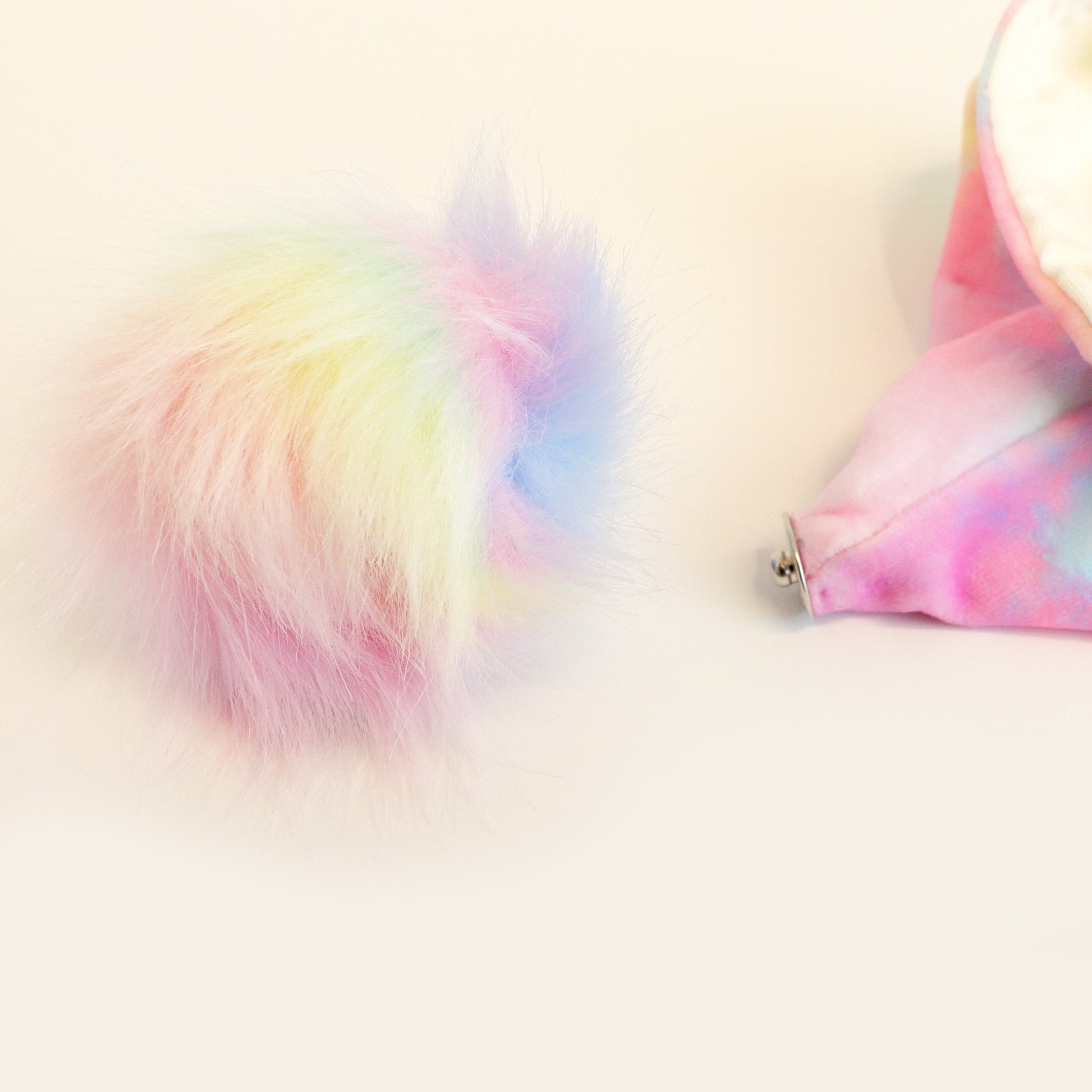 Detachable Pom Pom: faux fur, acrylic fiber, polyester stuffing,