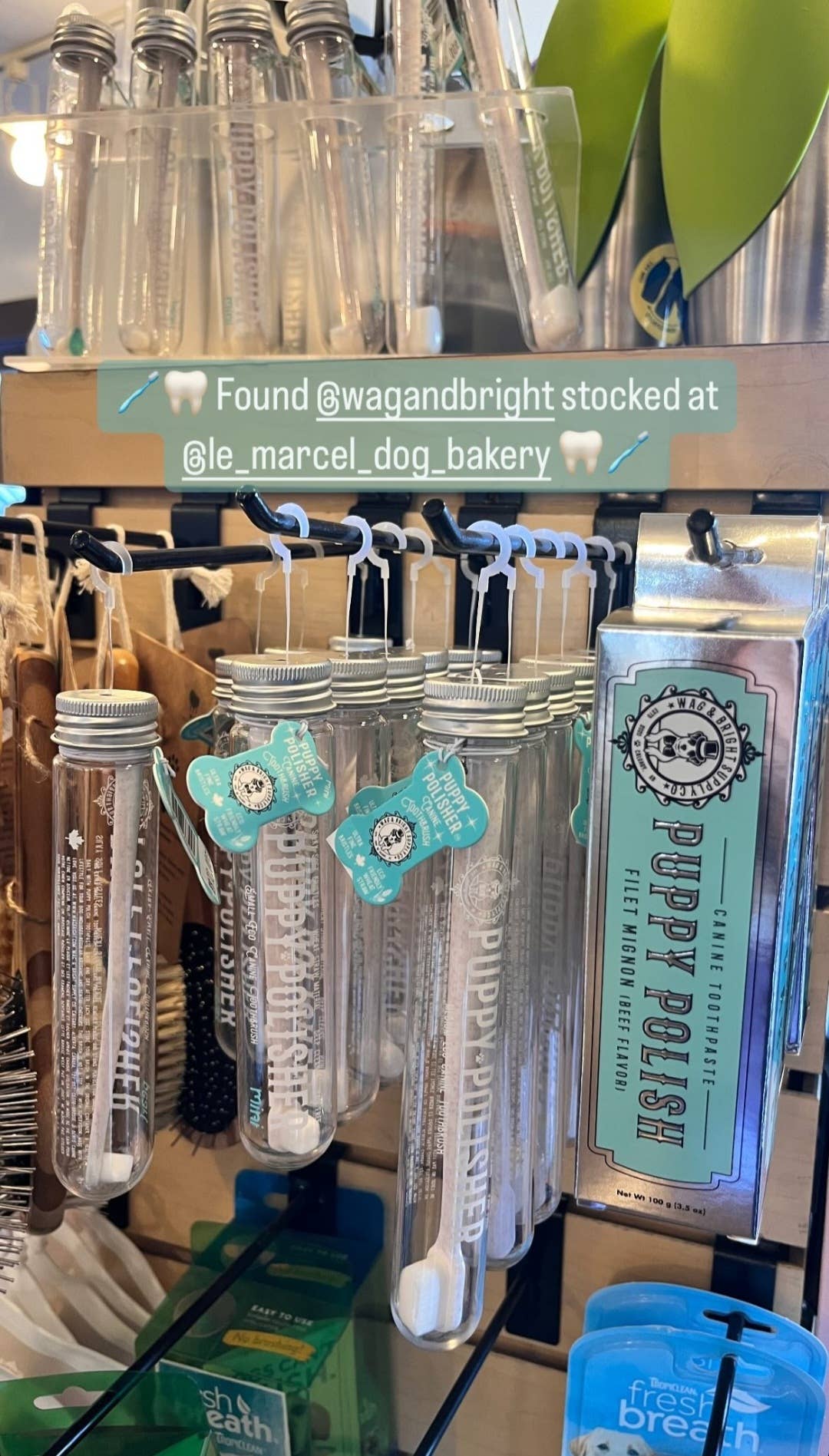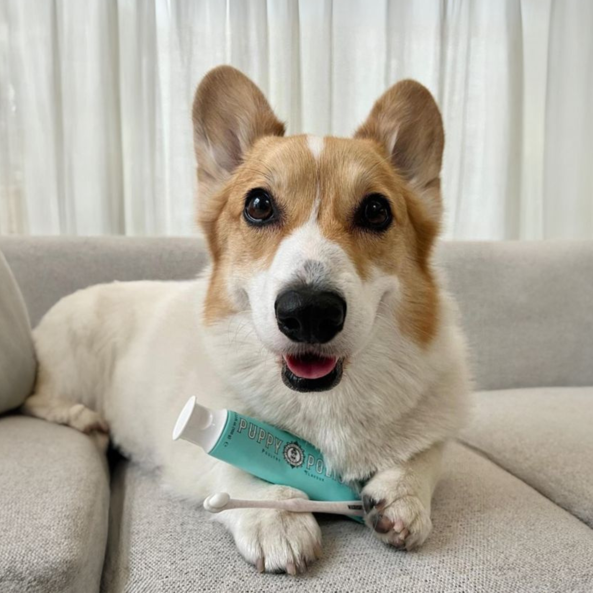 NEW FLAVOR - Puppy Polish Toothpaste - Filet Mignon (BEEF) (100g/3.5oz) is the ultimate canine oral care solution, crafted with natural ingredients for a kissable smile. Our lab-tested formula fights plaque, removes stains and bacteria and ensures fresh breath for your best friend. Featuring quality ingredients like Baking Soda, Coconut Oil & Stevia, it guarantees a delicious experience safe for dogs of all ages. It has a very subtle aroma, which humans appreciate. Free from chlorhexidine, DMDM, colors, parabens, triclosan, fluoride, xylitol & heavy metals. Available 2/08/24. Expiry 01/2027. ***Chicken Flavor has been discontinued INGREDIENTS- Purified Water, Calcium Carbonate, Sorbitol, Hydrated Silica, Beef Flavor, Coco Glucoside (Coconut Oil Derived), Sodium Bicarbonate (Baking Soda), Cellulose Gum, Xanthan Gum, Sodium Pyrophosphate, Cocos Nucifera (Coconut) Oil, Potassium Sorbate, Cymenol, Stevia Rebaudiana. Designed and 3rd party-tested in Canada.
