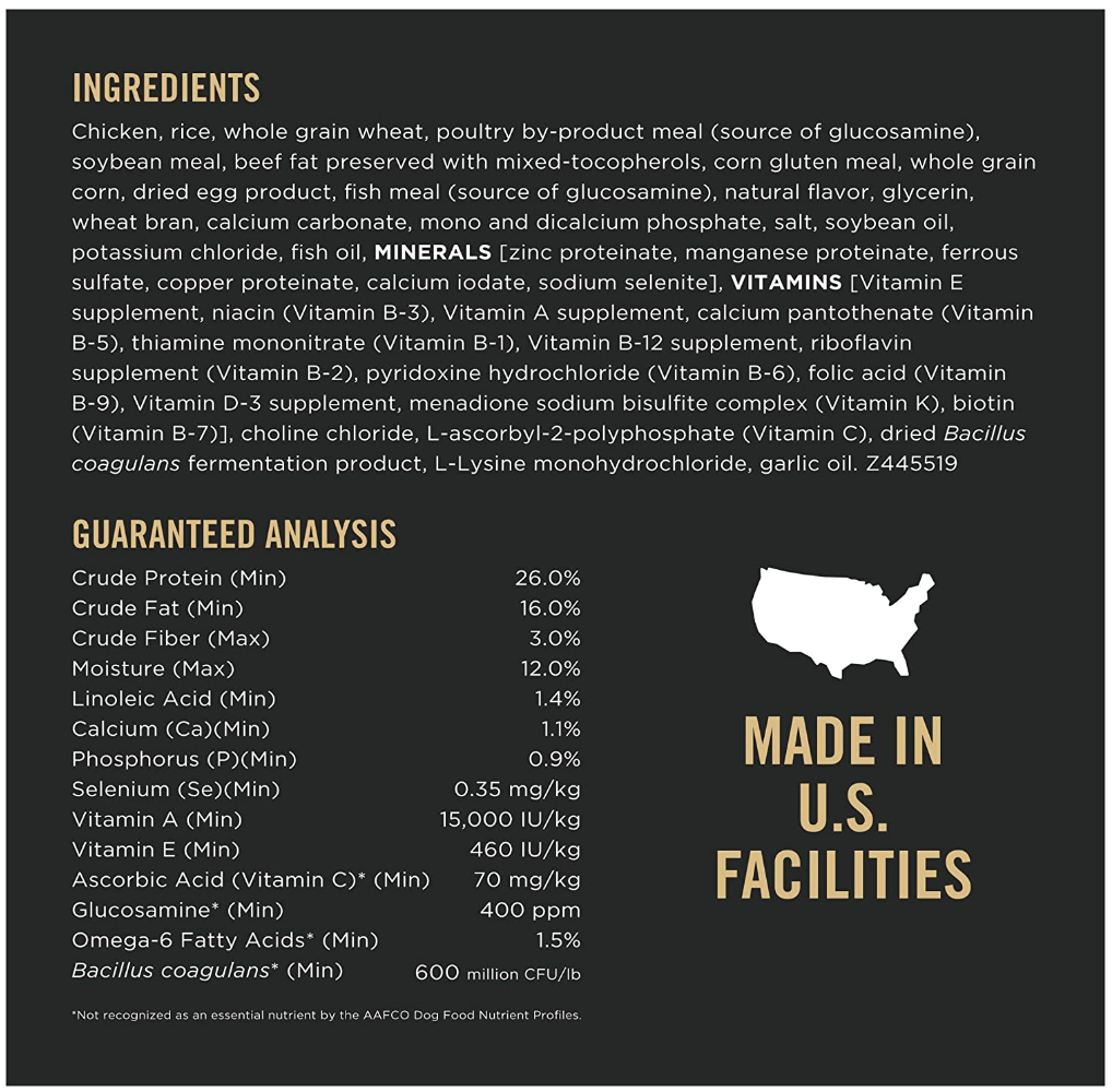 - Omega-6 fatty acids and vitamin A to nourish skin & coat