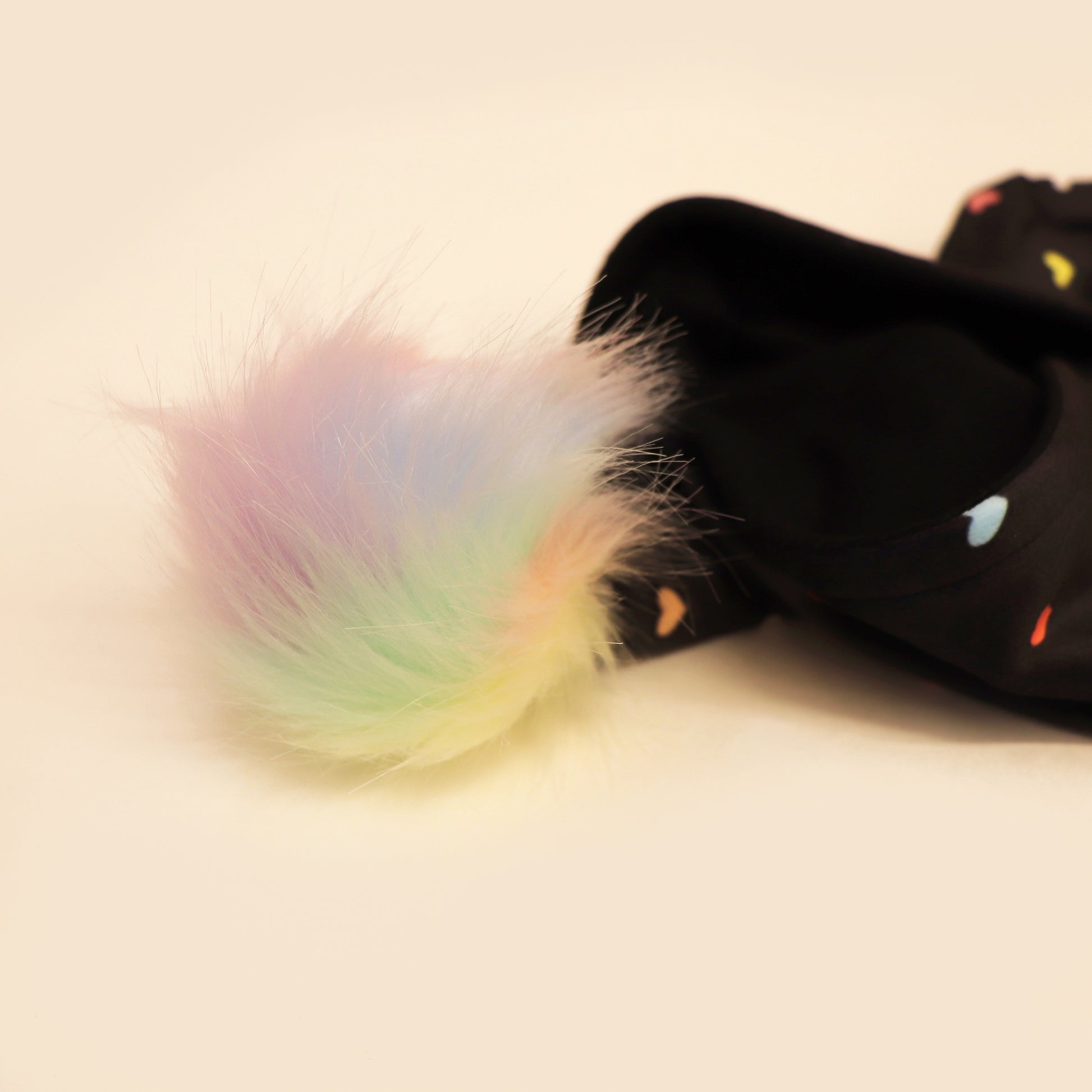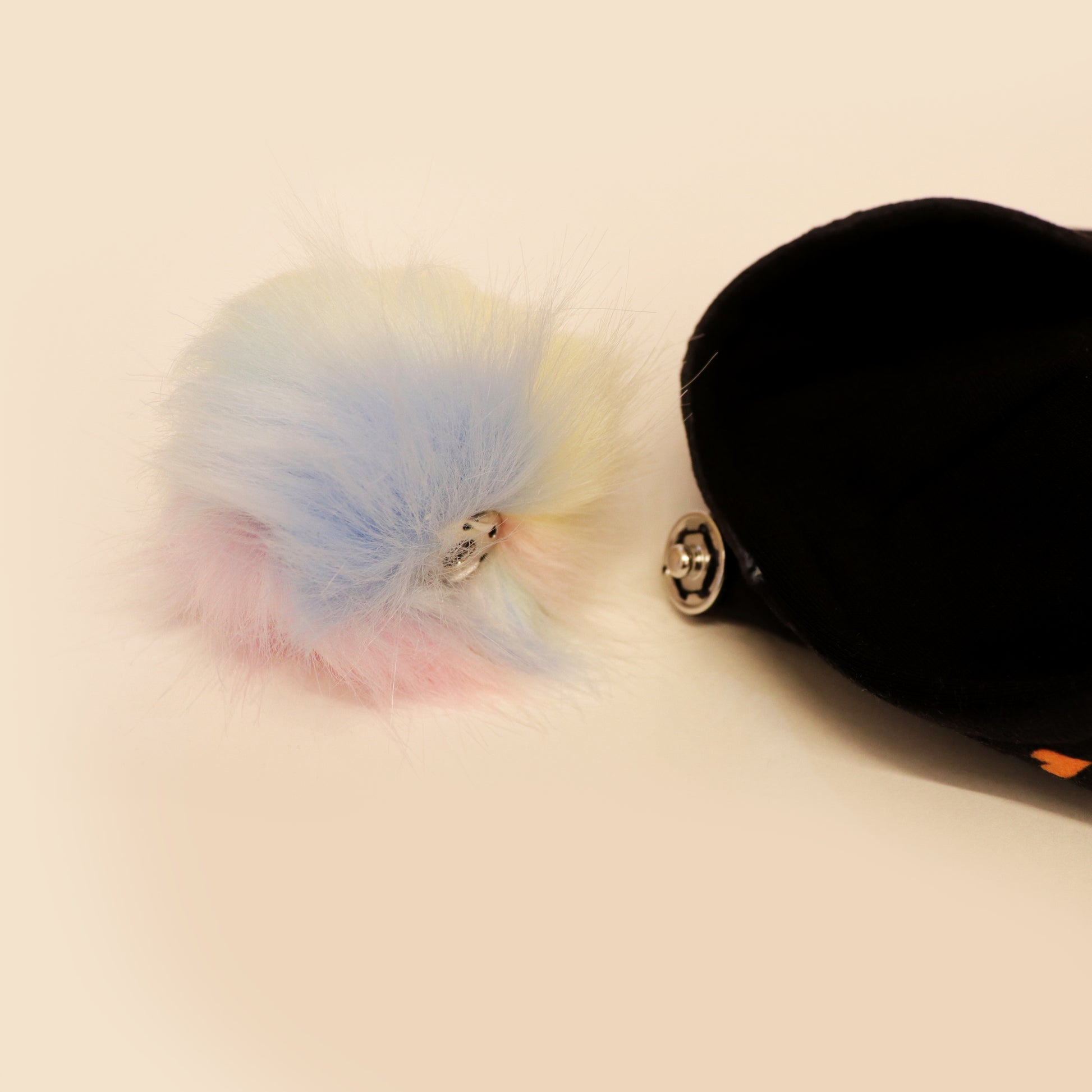 • Detachable Pom Pomfaux fur, acrylic fiber, polyester stuffing,