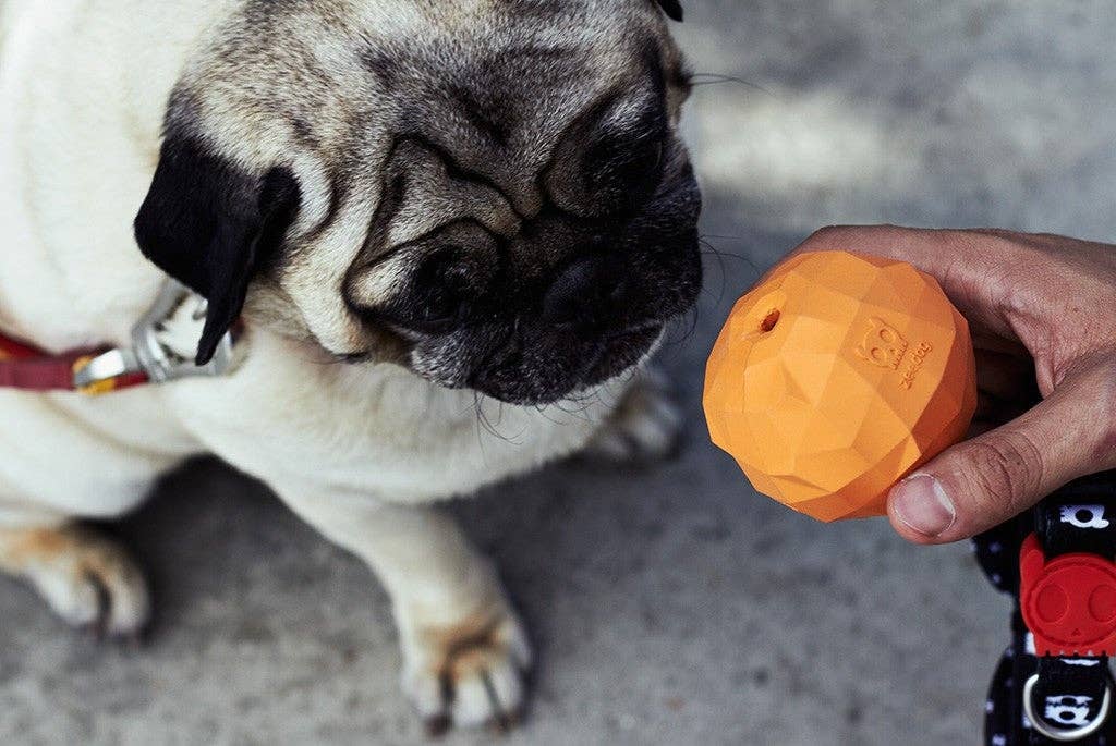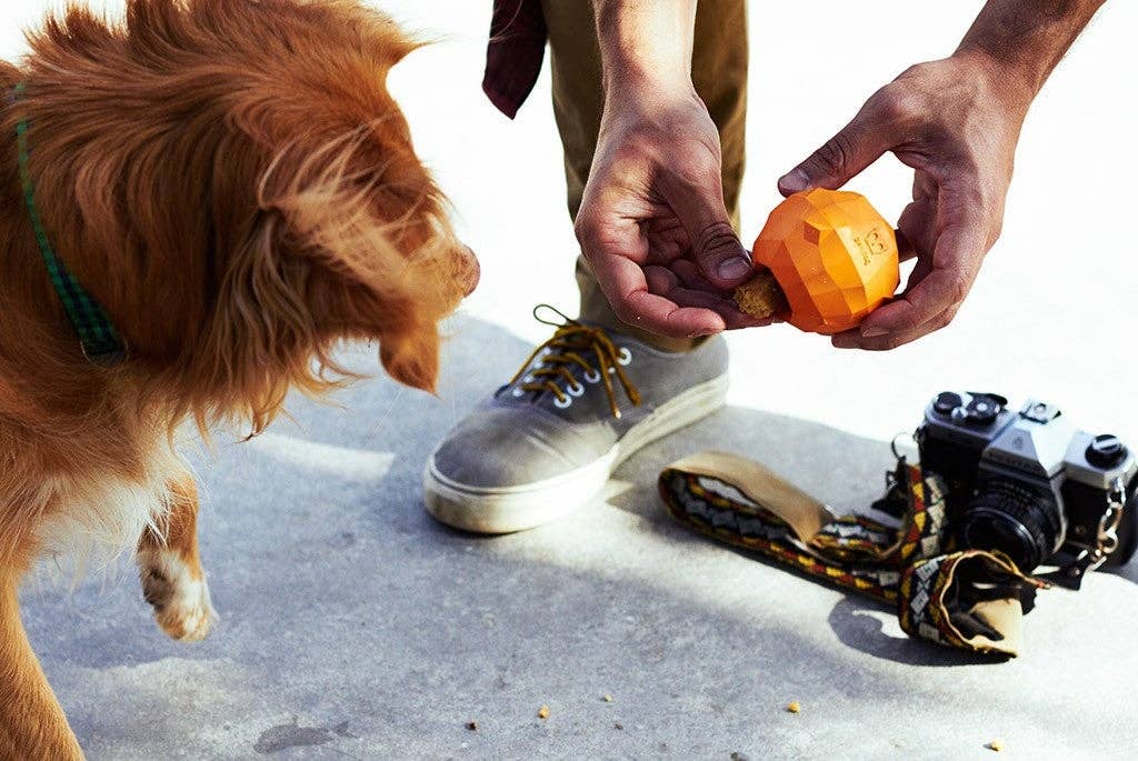 Your dog is going to love our Super Orange dog toy. Durable, tough and loads of fun, we designed all of our Super Fruit dog toys with a treat dispensing bottom to remind you to stuff them with healthy treats! Yes, healthy! * Non-toxic rubber * No toy is indestructible