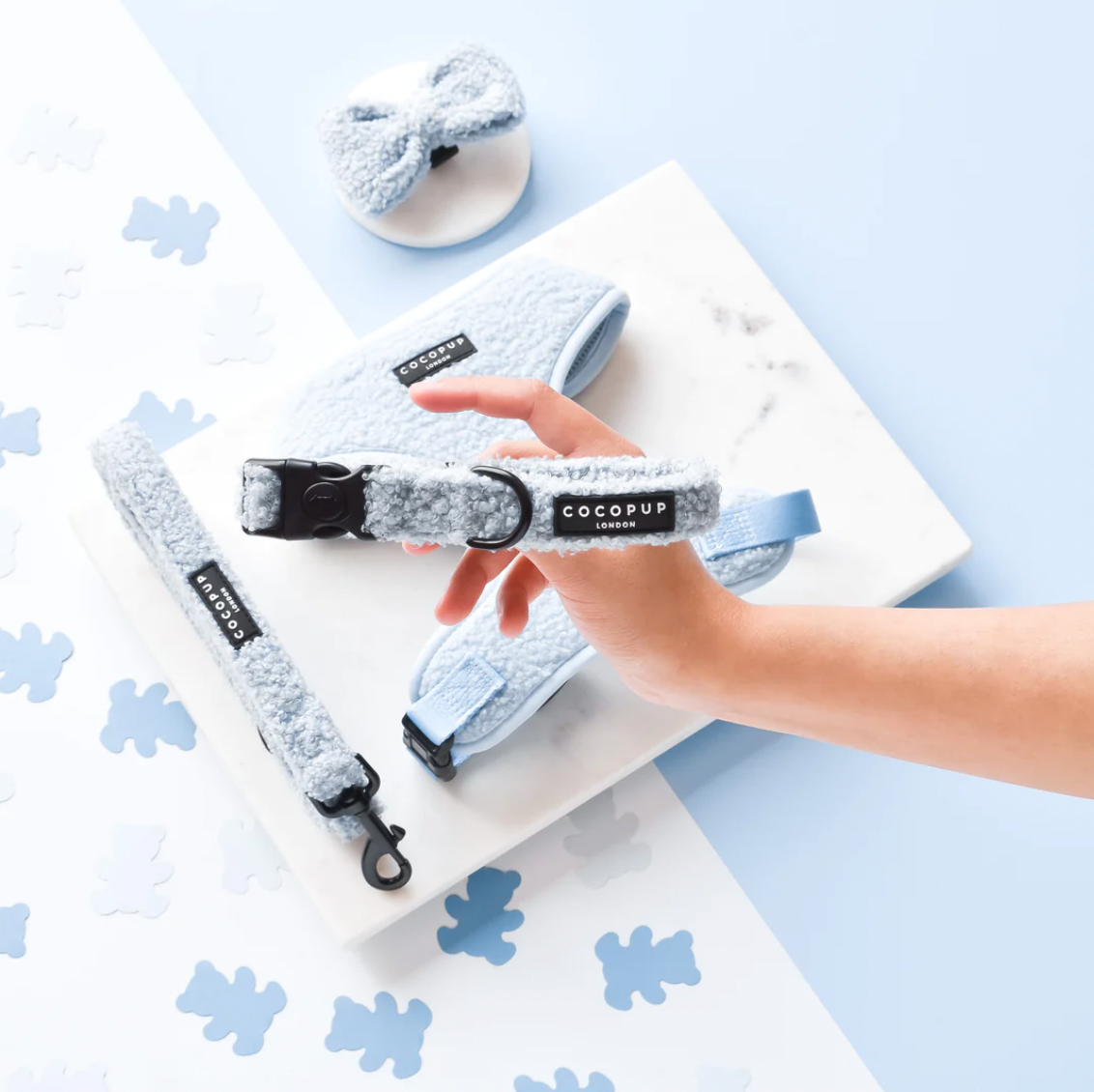 Be prepared for your pup to drift into a Daydream with our fluffy, soft and baby-blue Daydream Teddy Collar. It's the cutest addition to your pupdrobe! Our collars are fully adjustable with a D Ring Attachment for leads. Polyester Plastic buckle Fully adjustable Hand wash only Size XS (puppy) = 20cm - 28cm (width = 1cm) Size Small = 28cm - 44cm (width = 1.5cm) Size Medium = 32cm - 50cm (width = 2cm) Size Large = 46cm - 71cm (width = 2.5cm) **Please note that like all human accessories, dog accessories are subject to wear and tear and it is the responsibility of the owner to keep an eye on the condition to make sure it is safe for their pup to wear.