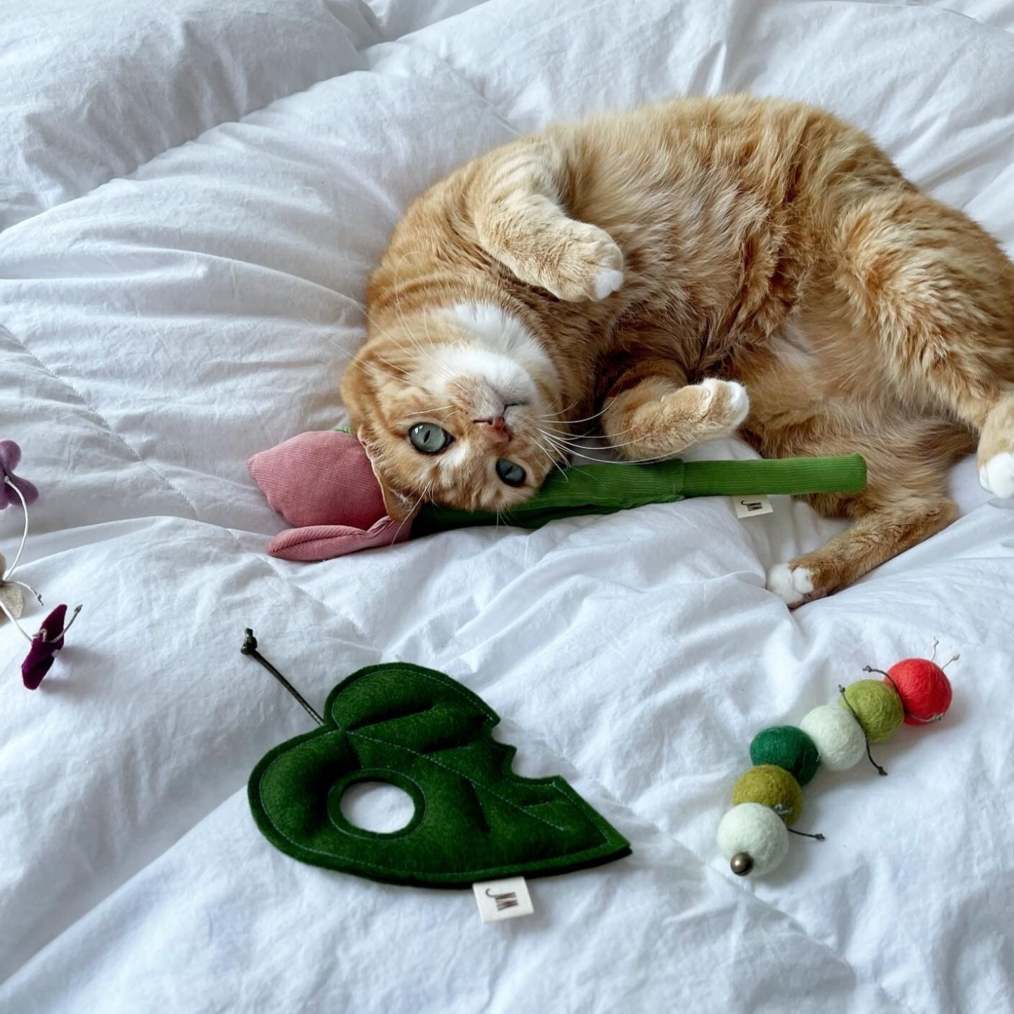 This tulip-shaped kicker is designed to awaken your cat’s senses—with a plush texture, natural scents, and a playful crinkle in the leaves.
